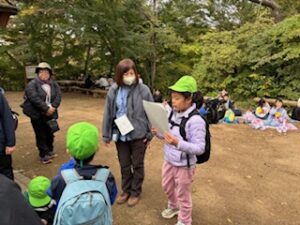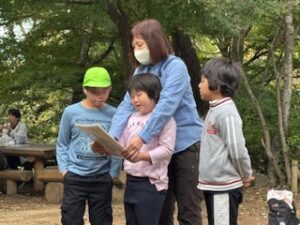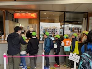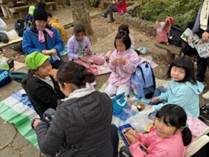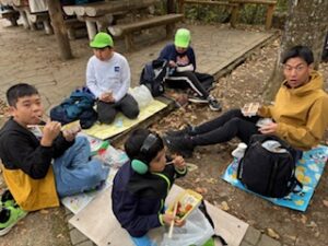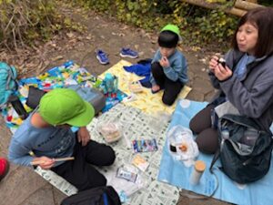 愛情と好物の詰まったお弁当だったので、どの子も普段の給食より食べるのが早かったです。しばらく歩いた後のおやつタイムでは、寒かったはずなのにソフトクリームが人気でした。