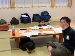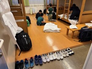 開校式を行った後、部屋に荷物を置いて、すぐにお風呂に入りました。山歩きの疲れをしっかり取って、このあと夕食となります。