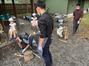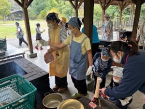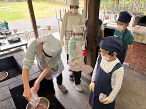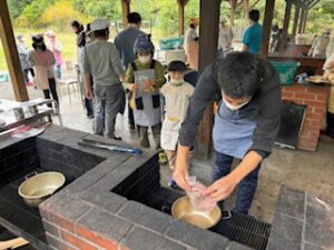 薪を割って、火を起こし、グループで協力して作ることができました。こんなに上手にできるとは思っていませんでしたが、自然の中で食べたので、より美味しくなったのだと思います。