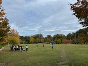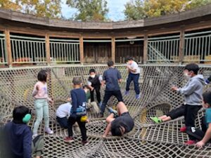 昼食の片付けをみんなで協力して頑張ったので、アスレチックで少しだけ遊びました。閉校式を終え、これからバスで小金井まで帰ります。