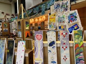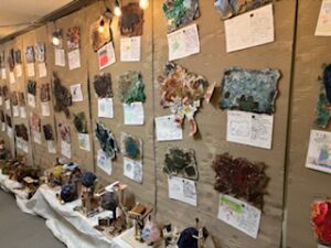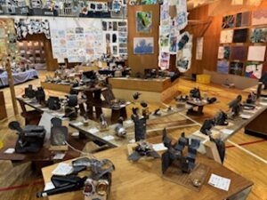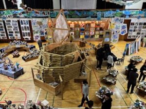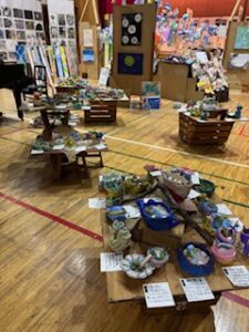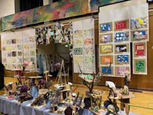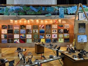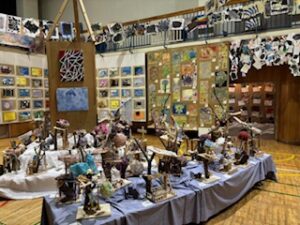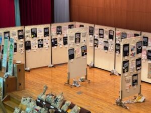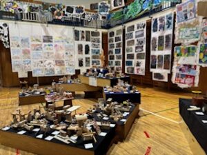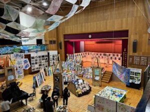 今日の午前は児童が鑑賞中で、「お兄ちゃんのがあった」とか「今度、作ってみたい」などの声が上がっていました。保護者・地域の方々は、今日の午後1時30分から4時30分まで(入場受付は4時10分まで)、明日は午前9時から午後4時30分まで(入場受付は4時10分まで)の中で、ぜひご来場ください。