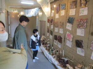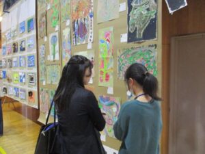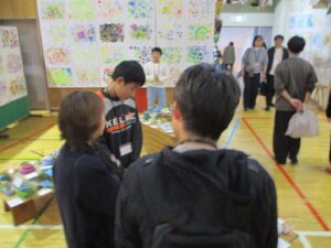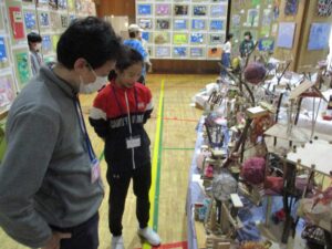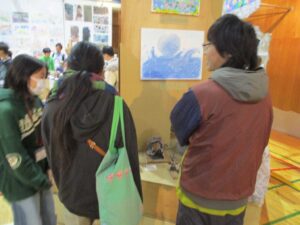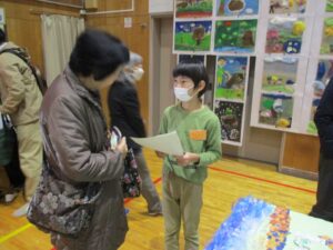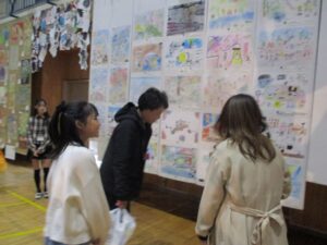 午前中は、6年生が務めるキャストの解説を聞きながら、卒業生・保護者・地域の方々に鑑賞していただきました。初対面の方に話しかけるのは大人でもハードルが高いことですが、6年生は勇気を出して声をかけていました。段々慣れてくると自分から積極的に歩み寄っていく姿が多く見られ、頼もしく感じました。また、英語で説明する場面も見られ、その必要性をより実感できたのではないかと思います。温かく傾聴してくださった卒業生・保護者・地域の皆様、本当にありがとうございました。