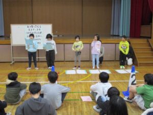 今日の2校時、4年1組とさくら学級が体育館で交流会を行いました。