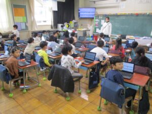 今朝、1年生が新しいchromebookを立ち上げました。