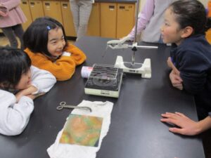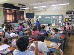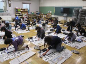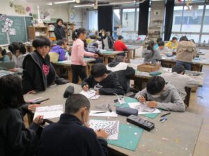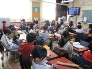 どのクラス、どの授業もまとめに入っています。3年生は、初めての毛筆での書初めや音楽のリコーダーを練習していました。また、4年生は、音楽で合奏「茶色の小瓶」のグループ発表、理科で熱伝導の実験、学級会をしているクラスもありました。そして、6年生は、図工で細かい作業に集中して取り組んだり、理科でペットボトルロケットを飛ばしたりしていました。