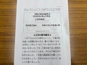 冬休み中は給食が無く、学童クラブの子どもたちは、毎日お弁当を持って来ていました。家庭によっては、昼食の用意をしてから仕事に行かれていた方もたくさんいらっしゃるかと思います。本当にお疲れさまでした。