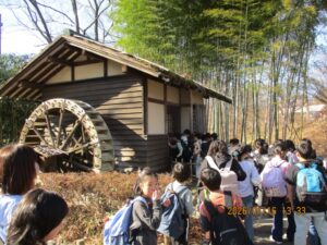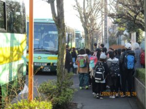 今日は、4年生が社会科見学で「府中郷土の森」まで出かけました。