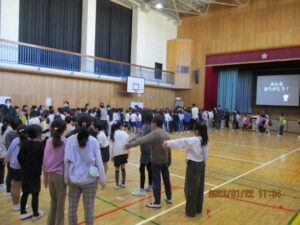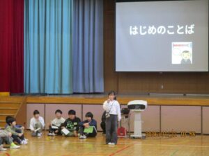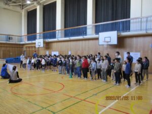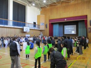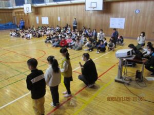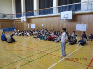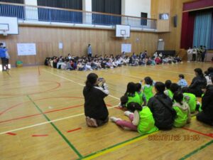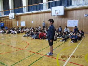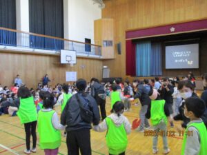 今日は、体育館で二小の3年生とさくら学級、そして小金井特別支援学校の3年生との交流会がありました。