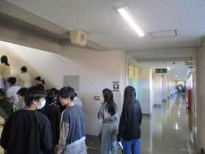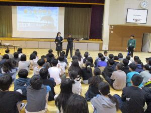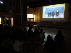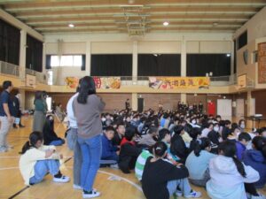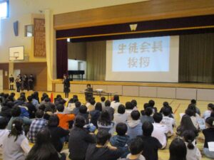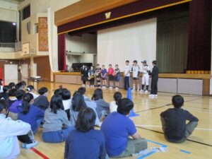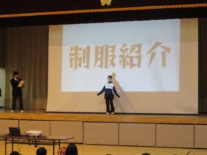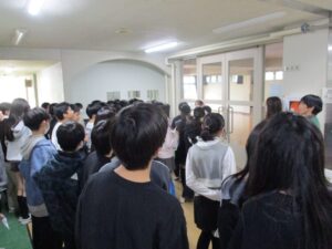 隣の一中に着くと、生徒会役員の1・2年生が出迎えてくれました。全員が二小出身者で、卒業生の活躍がまぶしく見えました。施設見学や委員会・部活動紹介などがあり、二か月後の中学校生活を少しですがイメージすることができました。