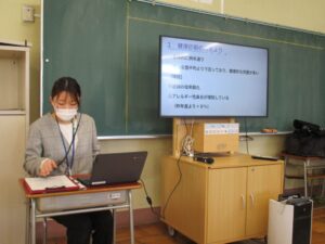 毎年度実施し、学校医の先生方にご来校いただき、保護者や地域・教職員が子どもたちの健康や体力、生活習慣などについて一緒に確認し合っています。今回は、学校から健康診断の結果や保健室利用、体力や生活習慣などについて報告させていただきました。そのあと、耳鼻科校医の三枝先生から花粉症・アレルギー性鼻炎について、詳しくお話を伺うことができました。また、薬剤師の柴崎先生からも薬の情報をいただきました。