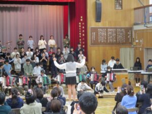 今日は保護者会の前に、体育館で6年生が「千本桜」の合奏を披露しました。