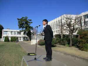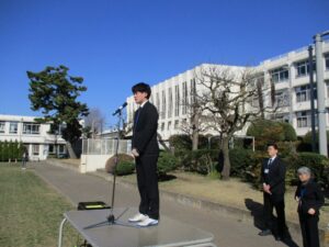 各クラスの代表に「修了証」を渡しました。外で長い時間でしたが、最後まで話をしっかりと聞くことができました。さすが二小の子どもたちです。校歌も今までで一番大きな声で気持ちよく歌えていたと思います。そして、修了式後には退職・異動する教職員から一言ずつ挨拶させていただきました。本当にお世話になりました。